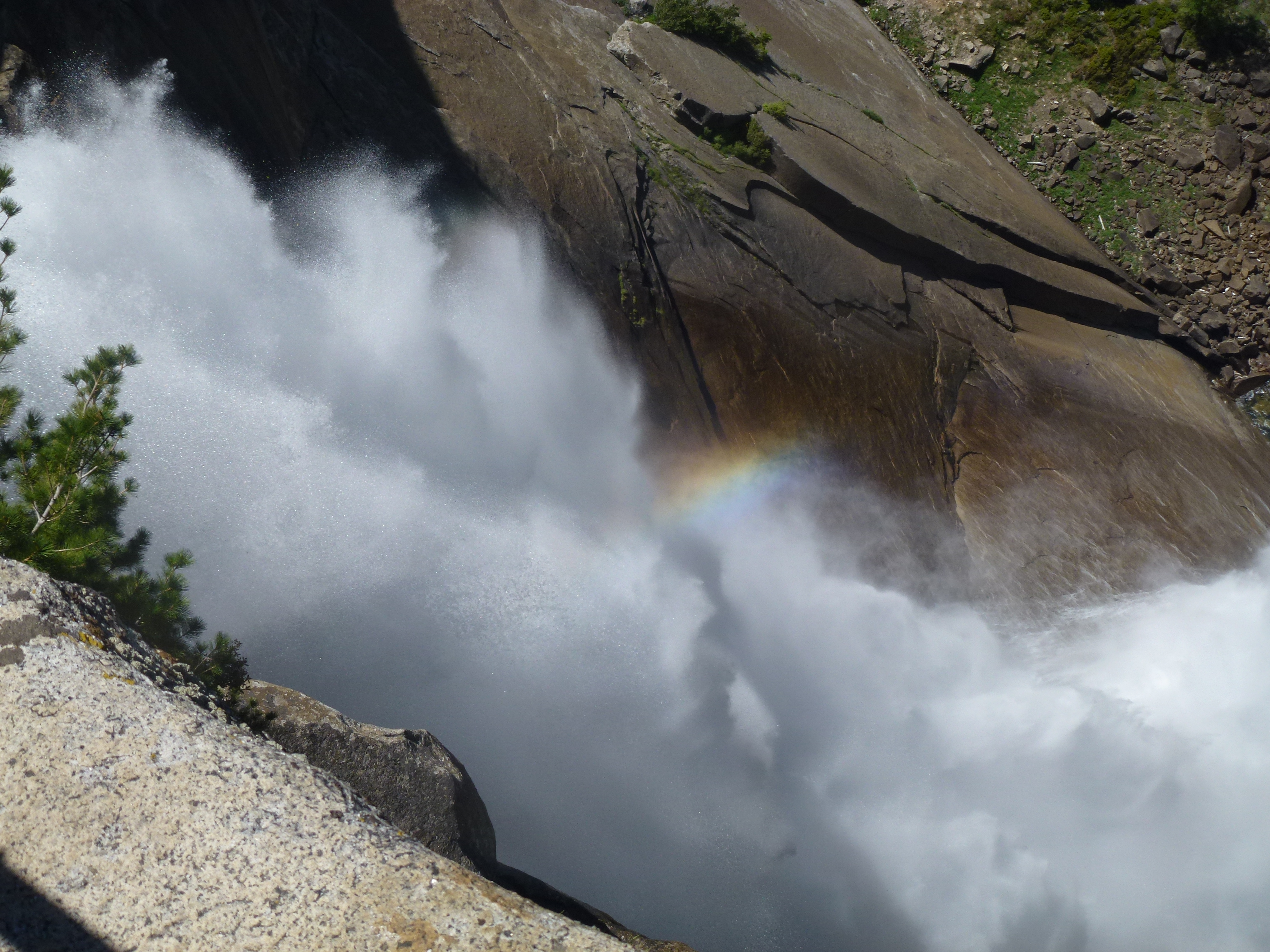 After lunch we are happily rejuvenated and with great pride and satisfaction of nearing the completion of a successful foray into the Yosemite backcountry, we saunter down the steps and trough the drenching mist, delighted with vivid rainbows at our feet. Past the mist we gather, all smiles. I look back up at the waterfall and I clearly hear her message. Why couldn’t I hear it before? I look at these bright and sometimes awkward teens, some abandoned by their wealthy parents to a well-appointed private boarding school. I know the incidence of teen suicide. I know I have to convey the message. With the roar of the fall in the background, I yell to my drenched students, “Look at this waterfall. It rambles along as a contented, unsuspecting river above. It laughs and burbles. It’s going somewhere safe within its banks. And suddenly, it is flung over a cliff, broken to bits, turned upside down and every which way. It doesn’t even recognize itself. By some absolute miracle it is gathered back together to continues its journey. So when you have difficult times in your lives, and you will, remember the lesson of the waterfall and how even when torn apart on a molecular level, it somehow returns peacefully to its original form, a river on its journey home to the sea.” By now some kids have flung their wet bodies onto me in deep hugs and some are crying. Somehow, I’ve unwittingly become the messenger of the waterfall and spoken with words her message where it needed to be heard.